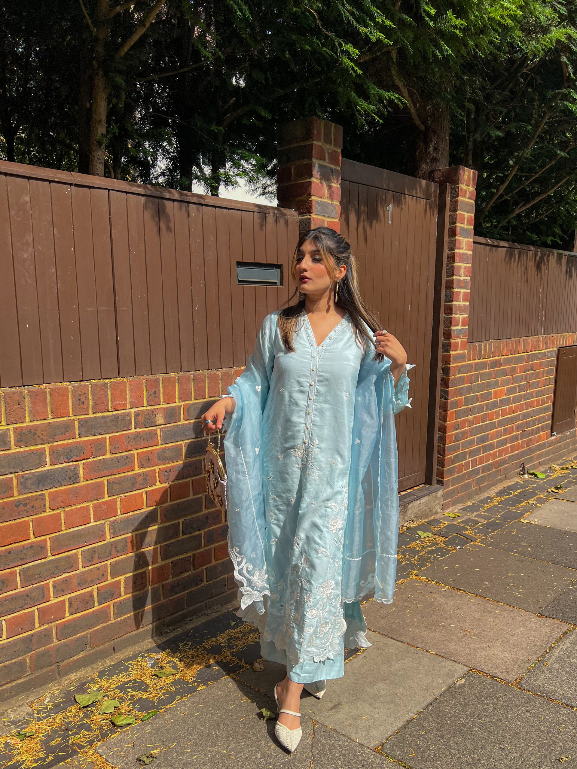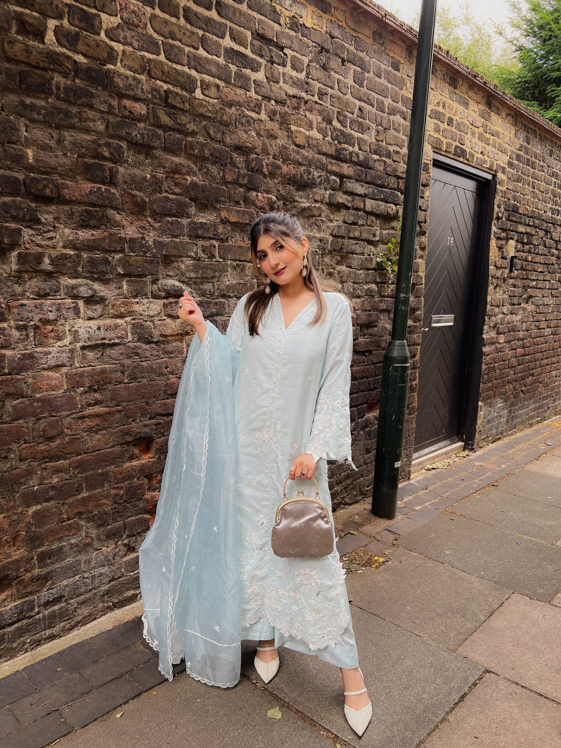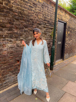 Part of our Summer Collection, this elegant ensemble is crafted from lightweight, breathable Khaadi silk, perfect for warm-weather occasions. Intricate embroidery and subtle sequin detailing add a touch of sparkle, while the sheer organza dupatta completes the look with airy grace.